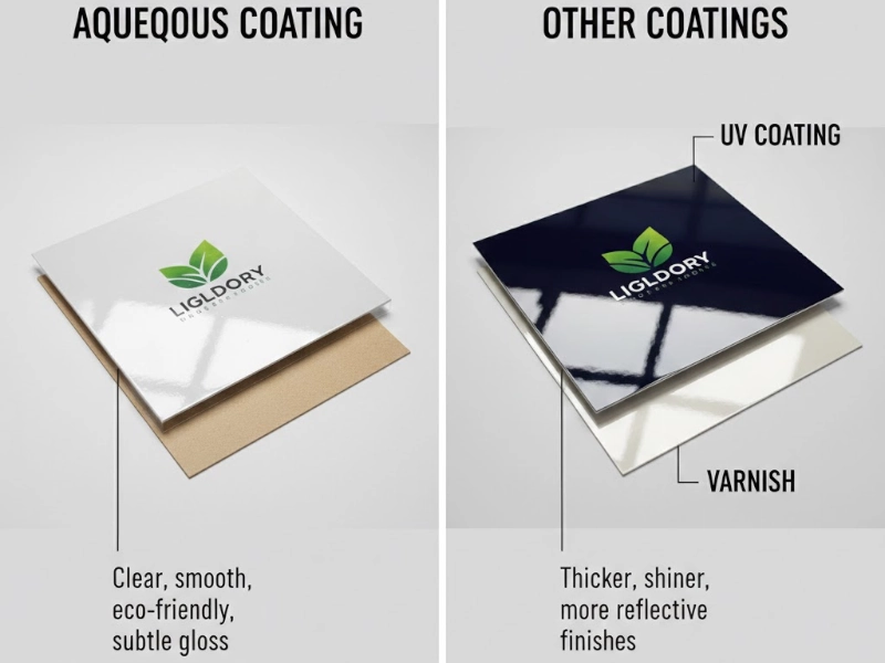 UV layers cure faster under light and feel harder. The comparison often comes down to use and cost. Aqueous coating vs UV coating is a common discussion in print planning.