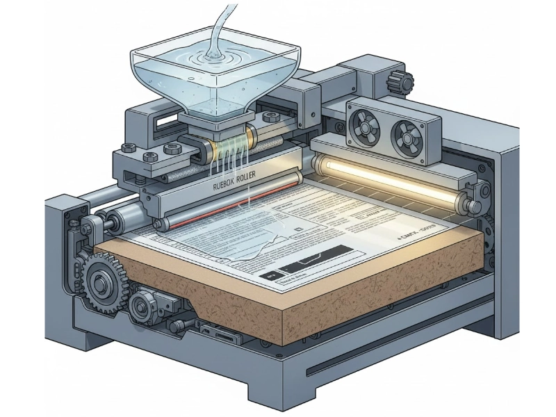 Rollers spread it into a thin and even film. Heat or air helps the layer dry quickly. Once dry, it becomes clear and smooth. The coating bonds with the printed sheet. This bond adds light protection and a refined touch.